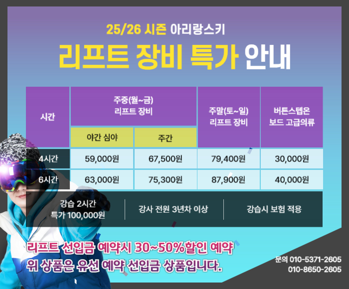 25/26 시즌 아리랑스키 리프트 장비 특가 안내